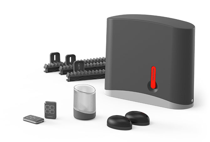 Motorisation connectée commandable à l'aide du smartphone où que vous soyez. Compatible avec les assistants vocaux Alexa et Google Home.